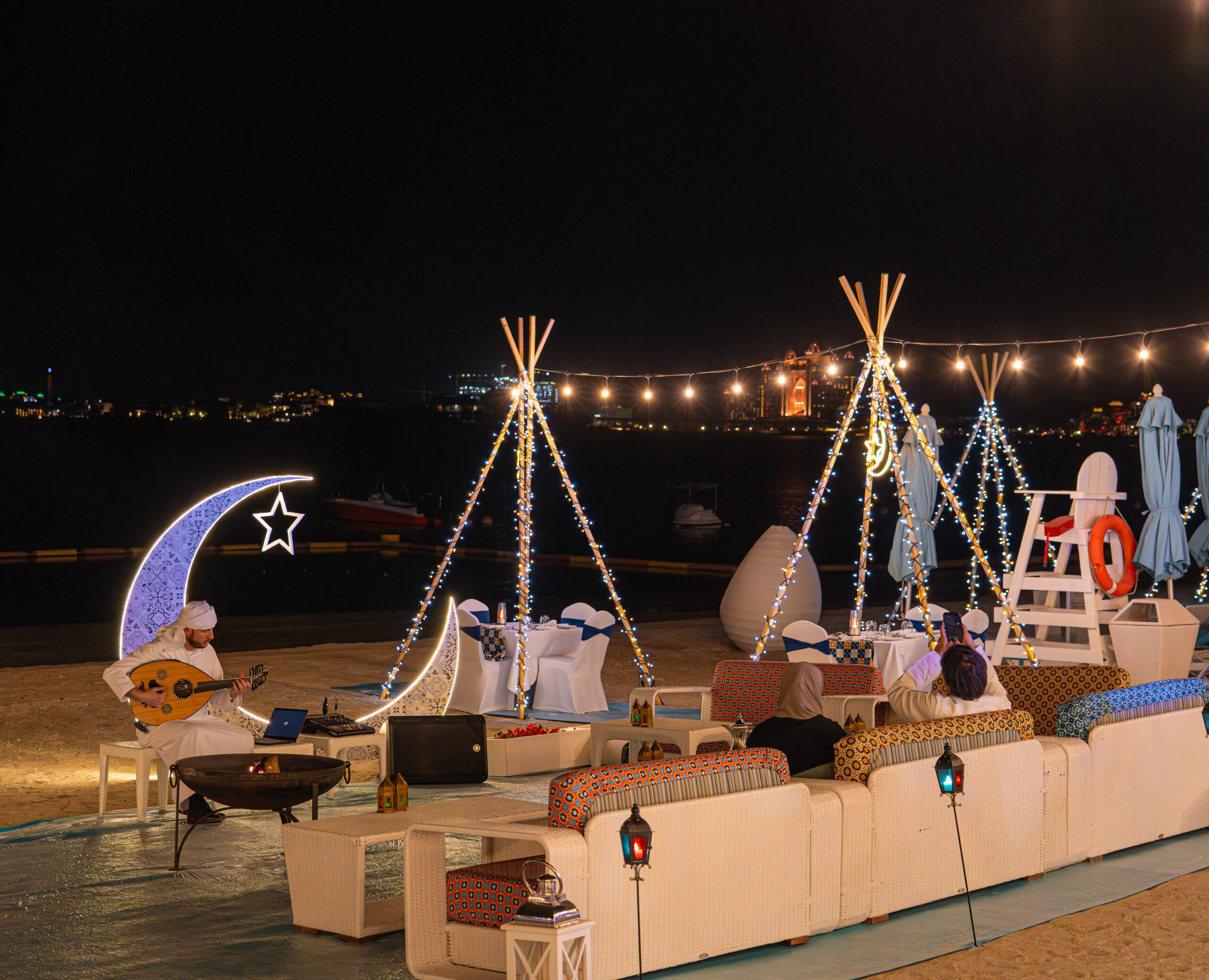 Set along the shores of Palm Jumeirah, The Retreat Palm Dubai invites you to experience a tranquil beachfront Iftar illuminated by lantern light and accompanied by the gentle rhythm of live oud melodies.
